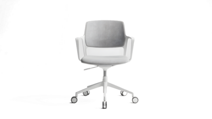 Side angle shot of a modern electric adjustable height standing desk in a home office isolated on white background