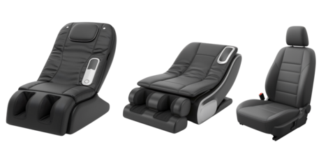 Comfortable brown leather recliner chair isolated PNG, modern swivel armchair with adjustable headrest and footrest for relaxation and home furniture