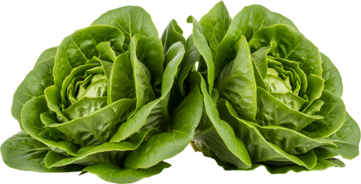 Two vibrant green butter lettuce heads fresh and crisp showing detailed leaf textures isolate healthy