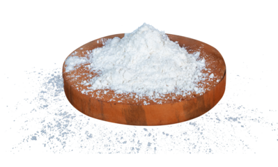 White powder pile forming a small mound, baking ingredient or cleaning agent, isolated on transparent background