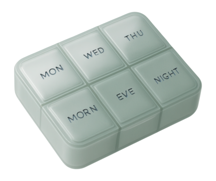 Electronic weekly pill organizer with digital timer and alarm isolated with transparent background
