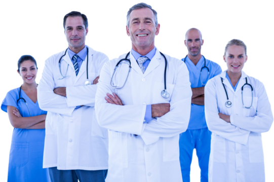 Dedicated and Diverse Medical Professionals: Confident Healthcare Team Portrait on White Background