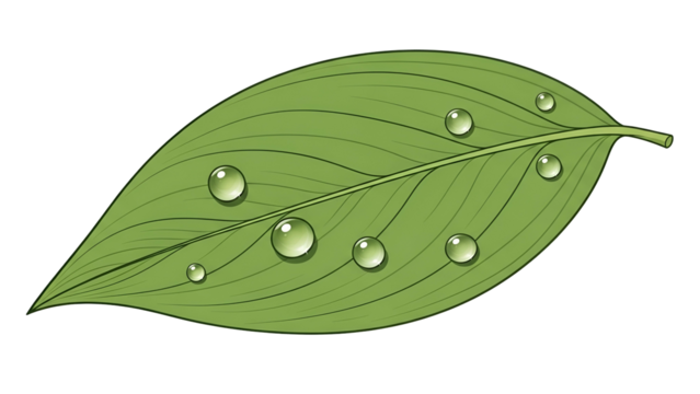 Green Leaf with Water Droplets on Transparent Background Illustration
