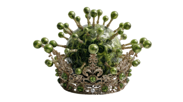 Corona virus global pandemic concept with jeweled gold crown symbolizing royalty, power, and disease spreading