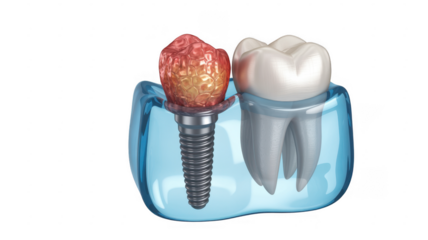 Dental implant with tooth and gum on black tooth implant dental surgery isolated on a transparent background