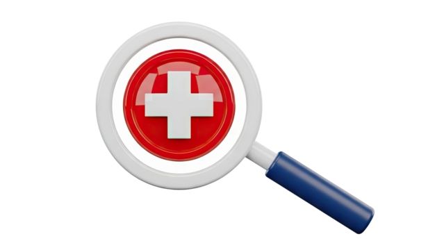 Medical Icons: Stethoscope, Red Cross, and Speech Bubble