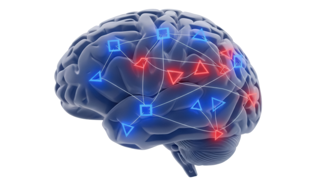 Blue brain model human brain anatomy isolated on a transparent background