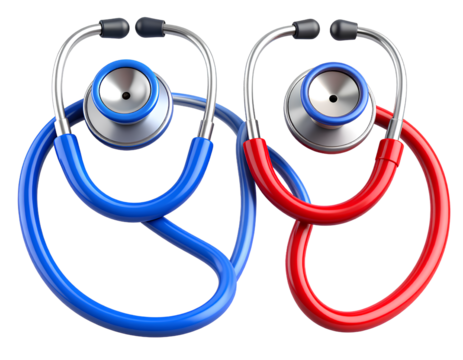 Pair of 3D Stethoscope Icons in Cartoon Plastic Style with Bright Colors, Transparent Background