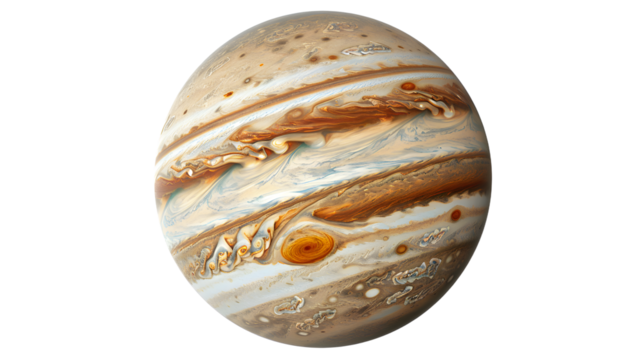 Top-Down View of Jupiter Planet with Colorful Gas Layers – Astronomy PNG