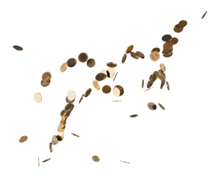 Pile of gold coins isolated on transparent background. Stacks of golden coins money growth concept isolated on a white background.
