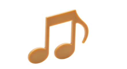 Isolated musical note ornament for decoration or gift, golden yellow color, no shadows, clean