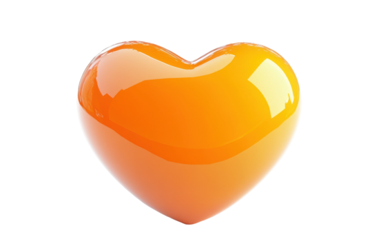 Glossy orange heart shape isolated on transparent background. Orange hear isolated on white background, 3d rendering.