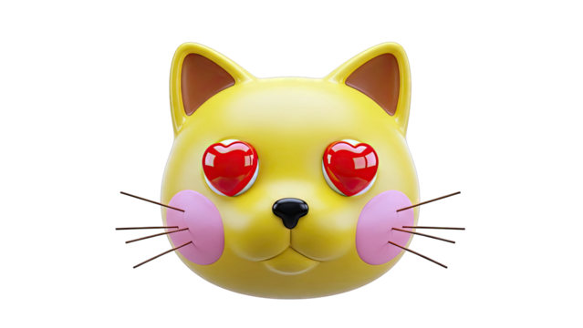 Yellow Cat Emoji with Heart Eyes and Pink Cheeks