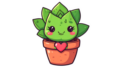 Cartoon succulent with big eyes, cheeks, and a heart in a pot