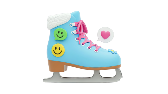 Cute Blue Ice Skate with Smiley Faces and Heart