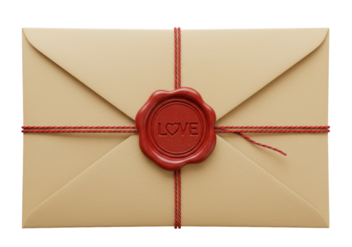 Isolated Romantic Envelope Sealed with a Love Wax Stamp