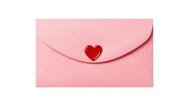 Pastel pink envelope with heart seal illustrating love and sentimental affection concept transparent background