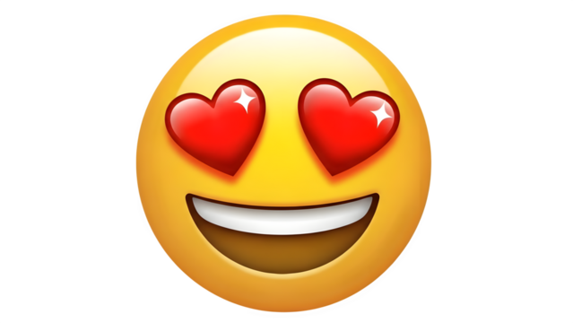 Vibrantly spectacular emoji with heart eyes on transparent background