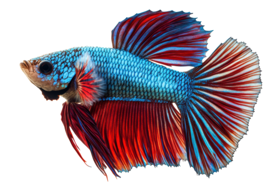 Colorful red heart design on a siamese fighting fish, an isolated animal object on a white background