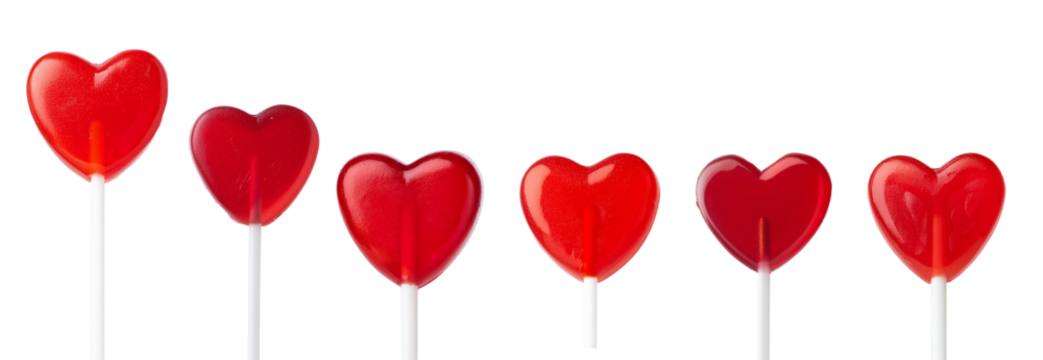 A collection of vibrant red heart lollipops, perfect for celebrating love and affection in various creative projects.
