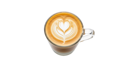 Cup of cappuccino with heart shaped latte art isolated on transparent background