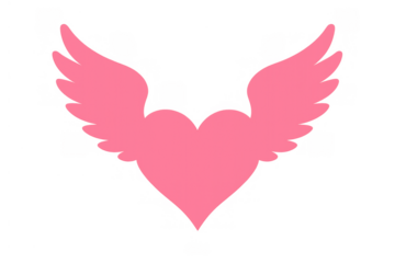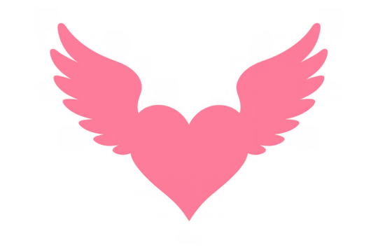 Pink winged heart symbol flying, representing love, freedom, and romance on a transparent background for design elements