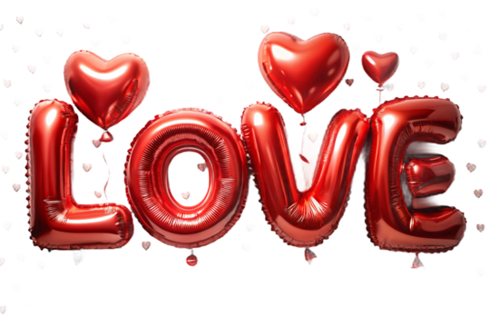 Red Love Balloons and Hearts on White Background isolated on a transparent background