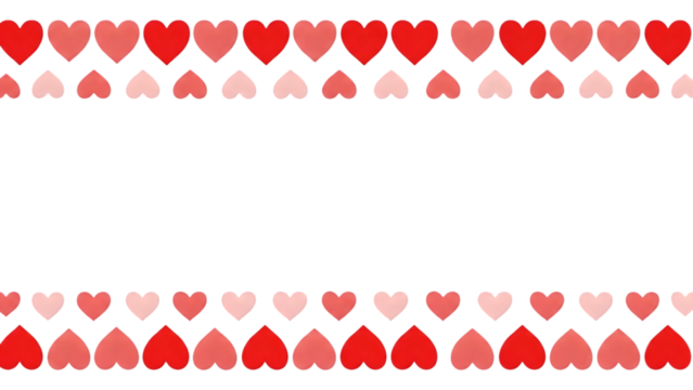 Colorful heart pattern with red and pink hearts on transparent background for valentines day or love themed designs and decorations