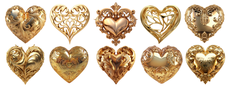 3D gold hearts png on transparent background