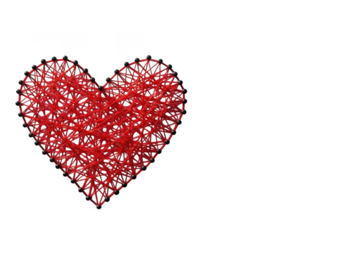 Red heart shaped wire sculpture isolated on transparent background