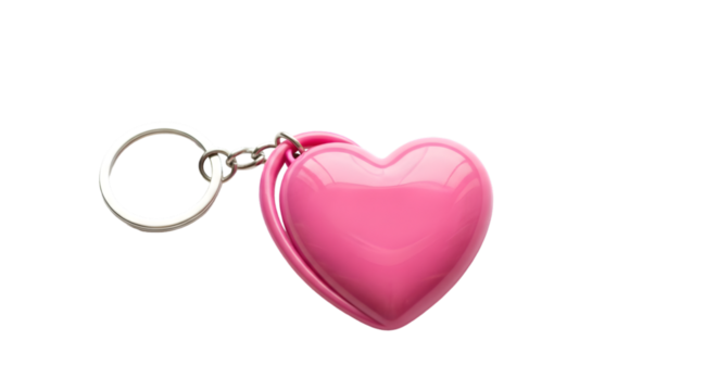 Silver heart-key pendant on transparent background