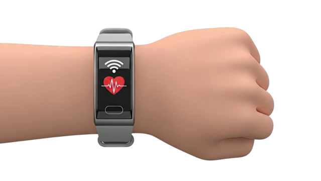 Modern smart watch with heart rate monitor display isolated on transparent background