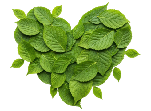 Green leaves arranged into a vibrant heart shape, symbolizing nature and love.