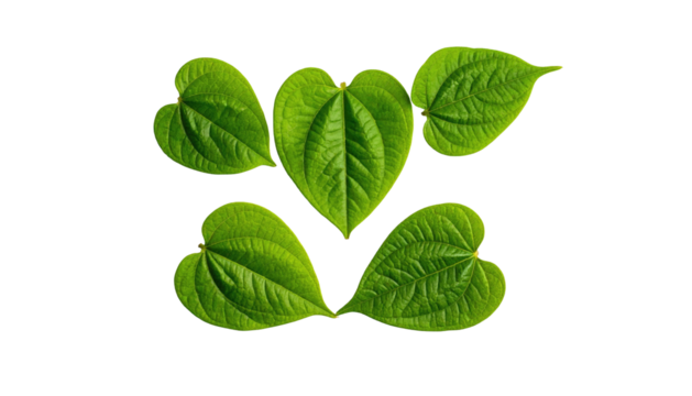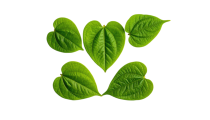 Green Heart Shaped Leaves Botanical Collection Isolated on White Background