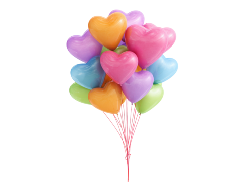 Heart shaped balloons in various colors, romance theme, cut out transparent