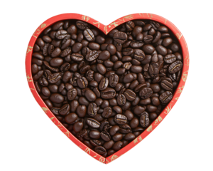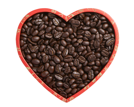 a heart shaped container filled with coffee beans