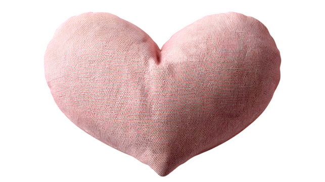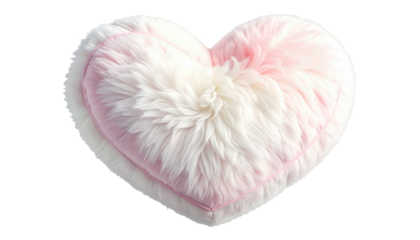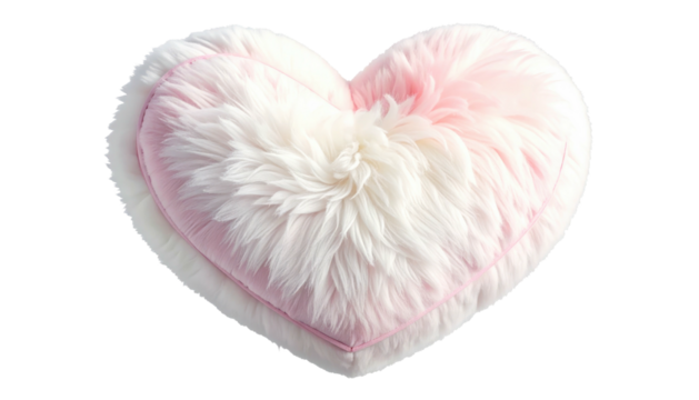 Fluffy heart pillow, white transitioning to light pink, textured and soft looking, isolated on black background