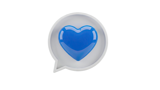 3D Blue Speech Bubble with White Heart Icon