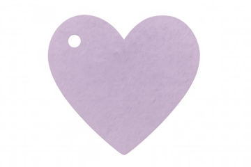 Purple heart shaped paper tag with a hole on a transparent background, ideal for valentine's day or romantic projects
