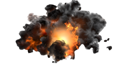 large fireball with smoke, png, isolated