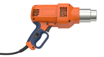 A modern white portable gas heater with visible glowing orange flames and a black grate isolated on transparent background isolated on white background
