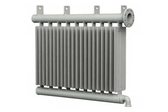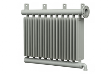 Industrial heat exchanger radiator for heating system on transparent background