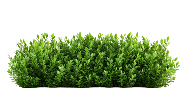 Perfectly trimmed rectangular green boxwood hedge isolated on transparent background, showing dense uniform foliage ideal for garden borders and landscaping designs