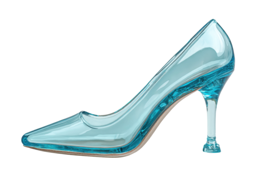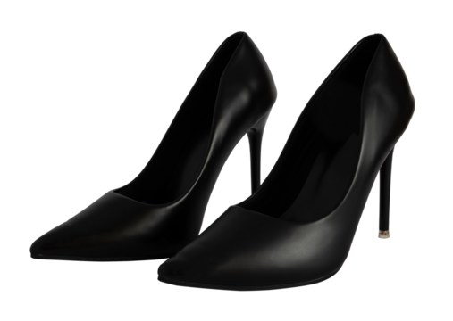 Black leather high heeled women shoes or Stilettos isolated on transparent background. Full Depth of Field