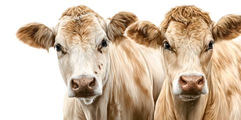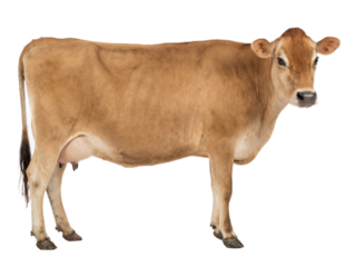 Jersey cattle small and fawn-colored with distinctive white markings isolated on transparent background