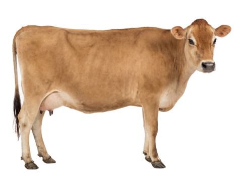 Brown Jersey cow standing isolated on transparent background (PNG)