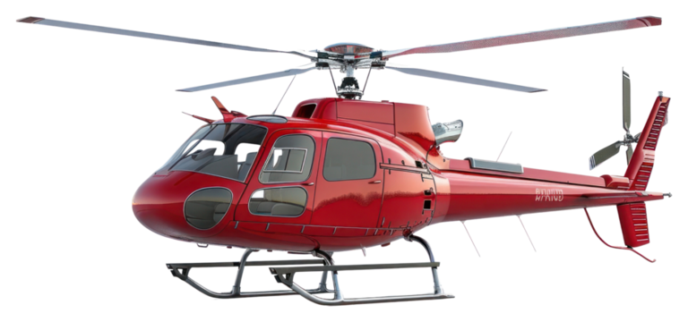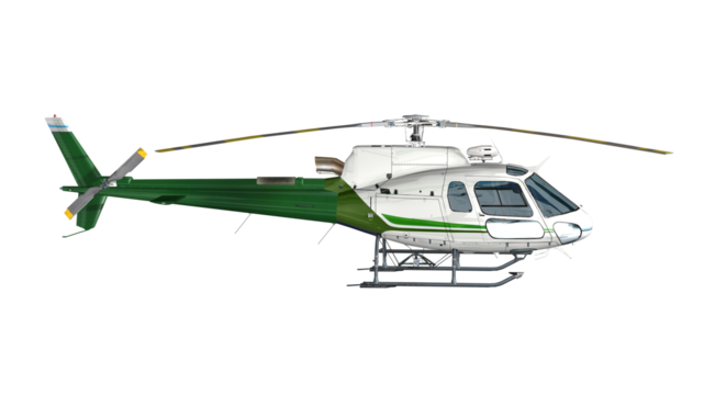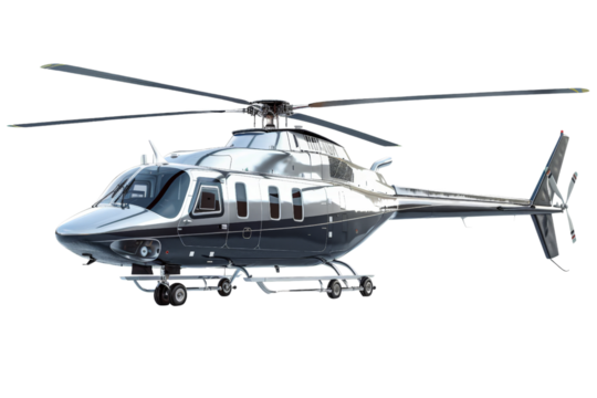 A helicopter isolated on a white background, featuring its rotor blades and versatile design for various missions.