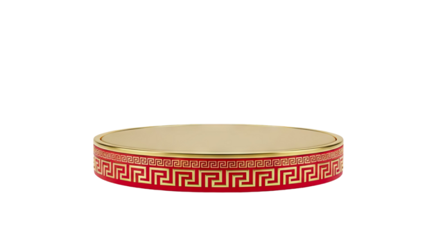 Gold and Red Greek Key Pattern Round Pedestal Base
