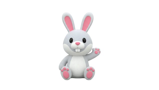 Cute Gray Bunny Toy Waving Hello