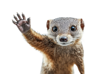 Cute mongoose waving hello with a friendly expression.